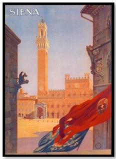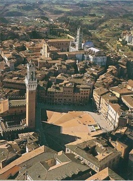Piazza del Compo'da önemli yapılar arasında, yüksek saat kulesiyle dikkat çeken belediye sarayı olarak kullanılan "Palazzo Pubblico" ve bir de çeşme var, "Fonte Gaia".