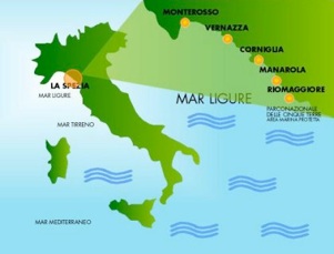 Kuzeyden güneye doğru sırasıyla, Riomaggiore, Manarola, Corniglia, Vernazza ve Monterosso al Mare yer alıyor.