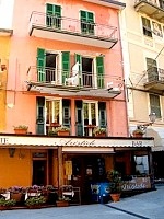 Cinque Terre'de genellikle konaklamak için pansiyonlar var. Kapsamlı ve yıldızlı otelleri burada bulmak pek kolay değil, zaten yapılaşmaya izin verilmiyor, mevcut yapıları görünce zaten insan şaşıyor, bu köy buraya nasıl kurulmuş diye.. Sanırım sadece Monterosso al Mare'de daha büyük oteller yer alıyor. Biz Manarola da çok şirin, pembe boyalı ve yeşil panjurlu bir pansiyonda kaldık. Pansiyonumuzun adı Ca de Capun - Rooms Franco. Gecelik oda fiyatı olarak 65 € ödedik. Web sitesini incelerseniz siz de farkedeceksiniz Ca de Capun Apartments, evlerinin bir kısmını ya da tamamını pansiyona dönüştürmüş ve internet üzerinde kiralayan bir grup yerel halktan oluşuyor.