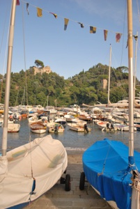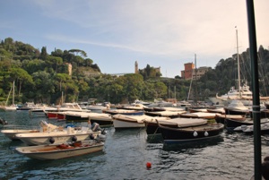 Cinque Terre'den çıktıktan sonra La Spezia'ya döndük ve La Spezia'dan otoyolu kullanarak seyahatimize devam ettik. Portofino La Spezia arası 87 km. Portofino'ya ulaşmak için, otoyoldan Rapollo çıkışından sonra sahil yolunu takip etmek gerekiyor. Yolda oldukça şirin bir sahil kasabasından daha geçtik, Santa Margherita.. Daracık ve virajlı sahil yolu, yol boyunca güzel manzaralar sundu bize. Yolda plajlar var, ancak park yeri bulmak imkansıza yakın, arabalar yol boyunca tek sıra şeklinde park etmiş, birçok kişi de Vespa motorlarla geziyor, hatta zaman zaman ona bile yer bulmak oldukça güç. Keyifli sahil yolundan sonra işte şarkılara konu olmuş, lüks sahil kasabasındayız.. ve başlıyoruz biz de şarkı söylemeye..