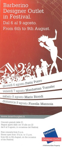 Floransa’ya 30 km uzaklıkta, Bologna - Floransa A1 otoyolunun, Barberino di Mugello çıkışında yer alan Designer Outlet, bir alışveriş merkezinden oldukça farklı. Öncelikle, açık havada, sokakta alışveriş yapar gibi tasarlanmış, bir ya da iki katlı dükkanların yan yana yer aldığı, meydanların da bulunduğu bir alışveriş semti havasında. Açık hava olması ve sokak konsepti ile tasarlanması İzmir'deki Forum Bornova’yı çağrıştırıyor bize.