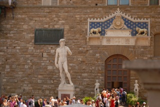 Bu meydanda gözümüze hemen Michelangelo'nun ünlü Davud heykeli çarpıyor. Heykelin orjinali her ne kadar artık Galleria dell'Accademia'da sergilense de meydandaki kopyası görülmeye değer güzellikte.
