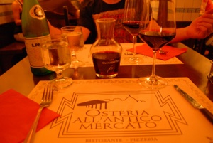 Akşam için otelimizde hazırlandıktan sonra, yemek için birkaç alternatifi gezip, "Osteria All'Antico Mercato"da karar kılıyoruz.