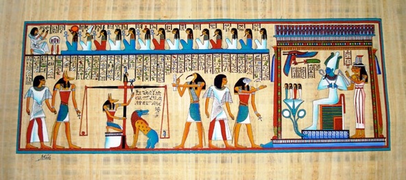 Bunlardan birisi "Final Judgement" - Son Yargılama olarak tercüme edilebilir Türkçe'ye. Bu tablo, öbür dünyaya yapılan yolculuğun son aşamasını betimliyor. Tanrılar, ölenin sonsuz yaşamı hak edip etmediğine karar vermek için toplanıyorlar. Çakal tanrı Anubis, ölen kişinin kalbini doğruluk tüyü ile tartıyor. Eğer tüy kalpten hafif ise, bu ölen kişinin iyi ve doğru bir hayat yaşadığını saf ve güçlü bir kalbe sahip olduğunu gösteriyor ve ölen kişi ölümsüzleşiyor. Eğer kalp, tüyden daha ağır gelirse, bu ölen kişinin kötü va yanlışlarla dolu bir hayat yaşadığını göstediyor, bu nedenle kalp canavar Ammut'a veriliyor ve Ammut tarafından yeniyor, böylece kişi ölümsüzlüğe değil hiçliğe terk edilmiş oluyor.