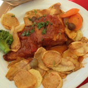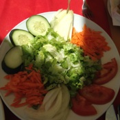Restoranımızın adı "Tertulia de Tejo". Menümüzde karışık salata (4,50 €), kızarmış morina balığı (15,95 €) ve karides (16,90 €) vardı. İçecekler ise küçük su (1,80 €) ve bira (2,60 €), kuver olarak zeytin, peynir, ekmek (7,20 €)