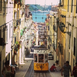 1892 yılından bugüne hizmet veren bu ulaşım aracına biniş ücreti diğer tramvaylar gibi 3,60 €. Bu dar sokağın güzelliği arkada görünen Tejo nehri ve sarı tramvayla daha da artmış, fotoğraf çekmeden geçmek imkansız.