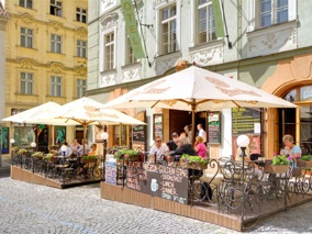 Bahçelerden sonra bir yemek molası verdik. Yemeğimizi Golden Star Restaurant (Zlata Hvezda)’ta yedik. Öğlen yemeği menümüzde, ördek (¼ roasted duck served with variety of dumplings & cabbages) (260 CZK-10,8 €) ve patates ve peynir kızartması (220 CZK-9,1 €) ve içecek olarak bira (60 CZK-2,5 €) vardı. Kişibaşı 25 CZK-1 € kuver olarak hesaba ilave edilmişti. Keyifli bir yemek molası oldu bizim için, sonrasında Küçük Mahalle’yi gezmeye devam ettik.