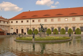 Bu anıtı gördükten sonra tekrar tamvaya bindik ve “Královský letohrádek” durağında indik. Kraliyet’e ait yazlık ev olarak kullanılan binalar ve güzel bahçeler vardı. Bu bahçelerden geçerek “Prag Kalesi” bölgesine geldik. Prag Kalesi 46 hektarlık bir alana yayılmış içinde bir çok önemli yapının yer aldığı Prag gezilerinde mutlaka görülmesi gereken bir bölge.