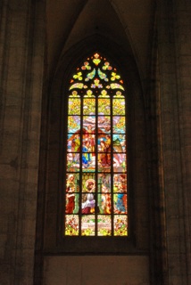 Kemikli Kilise’den sonra otobüsle şehir merkezine gittik ve 60 CZK-2,5 € ücret karşılığında “St.Barbara Katedrali”nin içini gezdik. Bu katedral, Çek Cumhuriyeti’ndeki en muhteşem Gotik katedral olarak kabul ediliyormuş. Gerçekten de çok büyük ve görkemli bir yapı. 13. yy.da maden sahibi zenginler tarafından yaptırılan katedralin içinde yer alan cam mozaiklerde madencilerin yaşamları betimlenmiş.