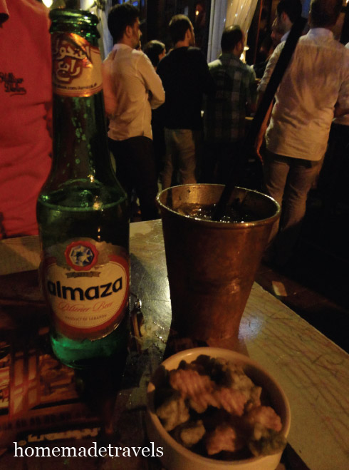 February 30’da kokteyller 15-16.000 LL (18-19 TL), bira ise 8.000 LL (9,5 TL)’ydi. Ben değişik birşey içmek istediğimden “rasberry mojito” denedim, eşim de yerel bira olan Almaza. Mojito bakır bir bardakta servis edildi, orijinaldi.