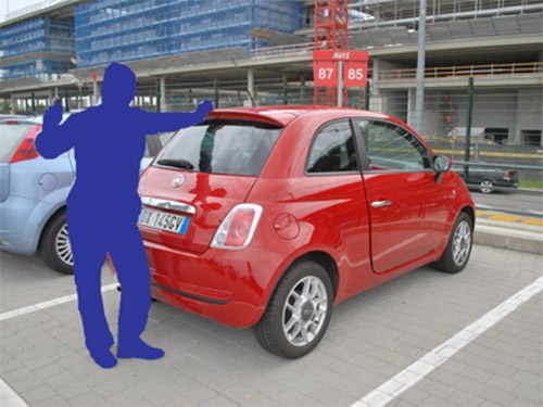 Ford Ka’yı biliyoruz ama Fiat Cinquecento da neydi diye birbirimize baktık eşimle, ben yarım yamalak İtalyanca’m ile cinquecento’nun 500 olduğunu farkettim, hadi dedik bilmediğimiz modeli seçelim ve Fiat 500 istediğimizi söyledik görevliye. AVIS ofisinden ayrılmadan önce tabii ki görevliden bir de İtalya haritası rica ettik. Arabanın anahtarını aldık, park yerini öğrendik, havaalanının içinde kısa bir yürüyüşten sonra kiralık araçların park yerine ulaştık. Herşey o kadar profesyonel ki.. Avis ofisinden araç park yerlerine nasıl gidilir haritası bile var. Kıpkırmızı şirin arabamız bizi bekliyordu :) Gördüğümüz anda sevdik cinquecento’yu Arabaya yerleştik, haritamızı açtık ve İtalya maceramıza başladık..