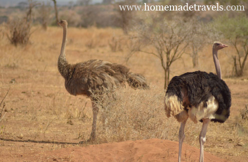 Safari boyunca filler, zürafalar, ceylanlar, afrika antilopları (gnu), zebralar, aslanlar, deve kuşları gördük. Tüm bu hayvanları doğal ortamlarında gözlemlemek çok keyif verdi bize. Bir yandan da Andrew bize hayvanlar hakkında bilgiler verdi. Özellikle aslanlar gündüzleri gölge bir ağaç altında dinlenerek geçiriyorlar. Kurak mevsim olduğu için de otlar hep sarı bu nedenle kamufle olmak aslanlar için çok kolay. Andrew’ün keskin gözleri sayesinde biz de dinlenen aslanları farkettik, hatta bir tane aslanın yemek yemesine bile şahit olduk safarimizin ilk gününde.