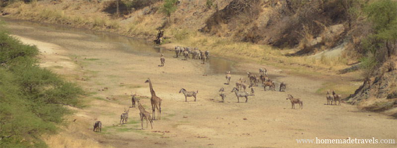 Parkın içinde dolaşırken nehrin olduğu kısma da gittik. Nehrin yatağı oldukça net görülebiliyordu ancak nehirdeki su yok denecek kadar azalmıştı. Birçok hayvan da su ihtiyacını giderebilmek için nehrin yatağında toplanmıştı. Fillerin dişleriyle toprağı kazıp suya ulaşabildiklerini hiç bilmezdik. Tabii ki fillerin hepsinin dişleri sapasağlam yerinde.