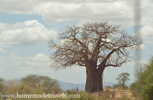 Tarangire Milli Parkı’ndan bahsederken baobab ağaçlarından bahsetmemek olmaz. İlk defa duyduğumuz ve gördüğümüz bu ilginç ağaçlar, Afrika ve Asya’nın tropikal bölgelerinde yetişiyorlar. Gövdelerinin çevresi 30 m’yi, çapı ise 9 m’yi bulabilen bu ağaçların en önemli özelliği gövdelerinin bir su deposu görevi görmesi böylece kurak mevsimi rahat  geçirebilmeleri.