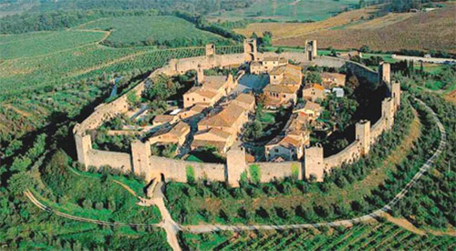 Toscana’nın en ilginç Ortaçağ kasabalarından biri olan Monteriggioni’yi koruyan 13. y’dan kalan yüksek duvarlar ve toplam 14 tane olan kuleler zamana meydan okurcasına hala ayakta. Küçük bir ücret karşılığında, duvarların üzerine çıkıp kasabayı ve çevreyi duvarlardan seyretmek mümkün.